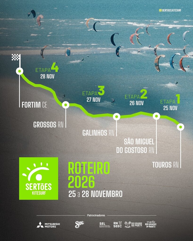 “O Sertões tem, em sua essência, o propósito de desbravar o Brasil e revelar a beleza de lugares que transformam cada edição em uma experiência única. Em 2026, o Sertões Kitesurf volta ao Rio Grande do Norte depois de cinco anos, em um reencontro muito especial com um dos cenários mais marcantes do velejo nacional. E, ao lado dessa volta, a prova seguirá também por trechos inéditos do litoral, combinando memória, descoberta e paisagens que prometem fazer desta edição uma das mais bonitas da história.”